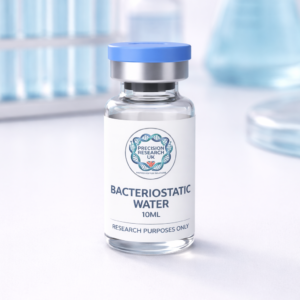 Bacteriostatic Water 10ML is a sterile, non-pyrogenic laboratory solution containing 0.9% benzyl alcohol, supplied for controlled in-vitro use in the dilution and reconstitution of lyophilised research compounds. Commonly utilised within peptide laboratory applications, this bacteriostatic preparation supports compound stability and repeatable handling procedures during structured experimental workflows, as provided by a trusted research peptides UK supplier. >99.9% Purity
