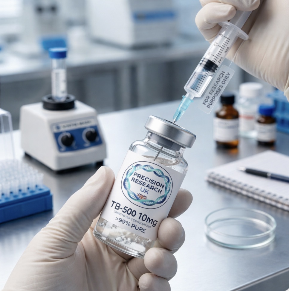 TB500 10MG is a research grade thymosin beta 4 peptide supplied as a lyophilised TB500 research peptide for advanced in-vitro investigation into connective tissue research peptide activity, cellular migration, and angiogenesis research peptide pathways. Commonly utilised as an actin binding peptide research compound, TB500 peptide may be incorporated into wound healing pathway research peptide and extracellular matrix research peptide models, as supplied by a trusted research peptides UK supplier. Designed for research purposes in controlled laboratory environments.